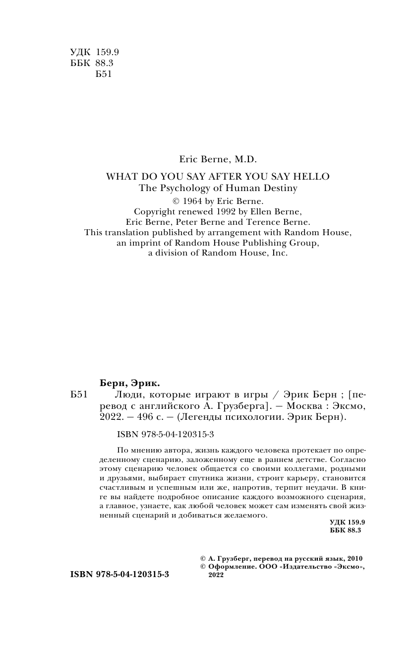 | Серия | Легенды психологии. Эрик Берн. Новое оформление |