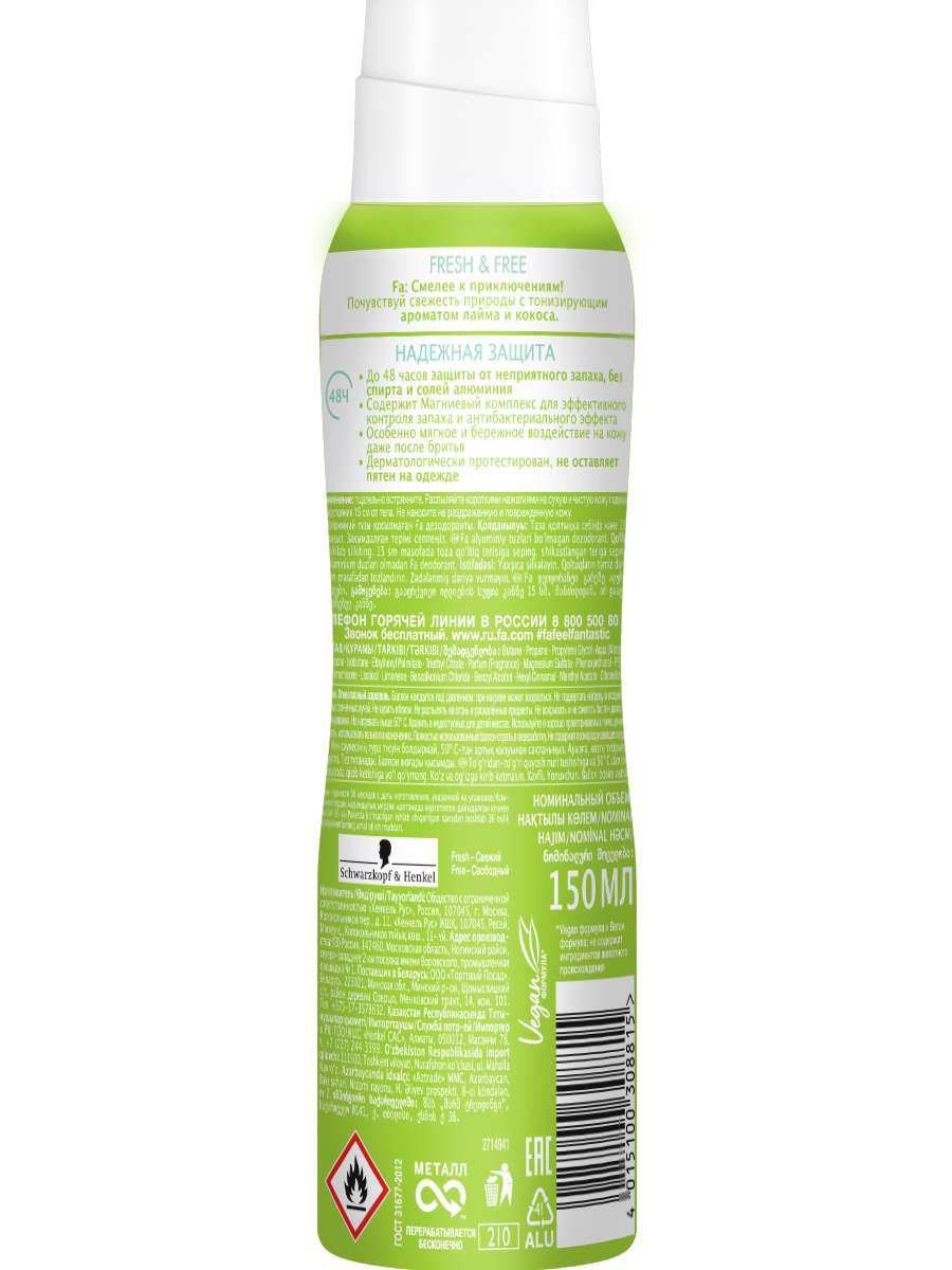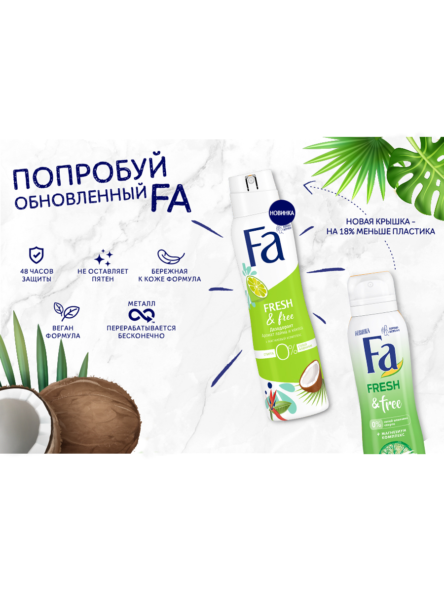 Дезодорант аэр. лайм-кокос Fresh&Free Fa/Фа 150мл ХенкельRU (1568370)
