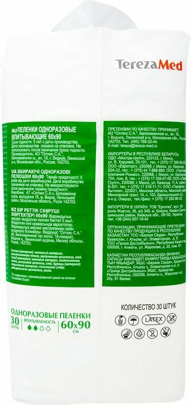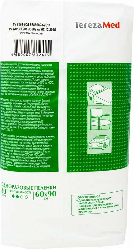 Пеленки одноразовые медицинские впитывающие Normal 60x90 4 х 30 шт TerezaMed АО ХАЙДЖЕНИК (1567246)