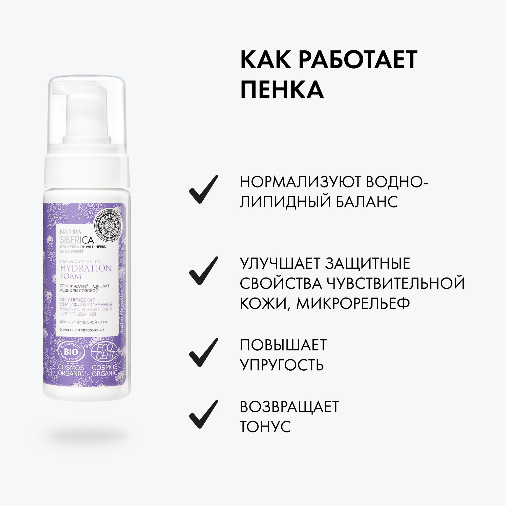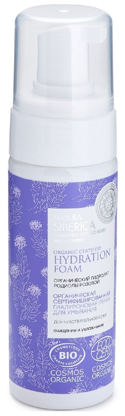 Органическая сертифицированная гиалуроновая пенка для умывания для чувствительной кожи нежно очищает, устраняя загрязнения и макияж. Ее формула, обогащенная высокоэффективными экстрактами сибирских растений, глубоко увлажняет, приводя в норму водно-липидный баланс и улучшая защитные свойства чувствительной кожи.