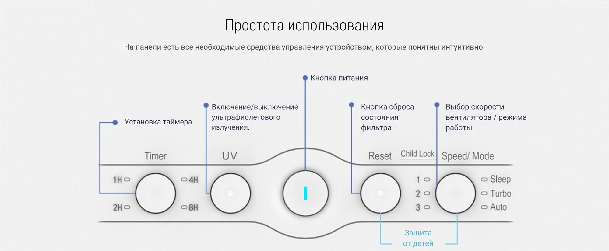 | Дополнительная информация | 3 режима потока воздуха, дисплей, таймер, четырехступенчатая фильтрация, защита от детей, функция УФ-лампы |