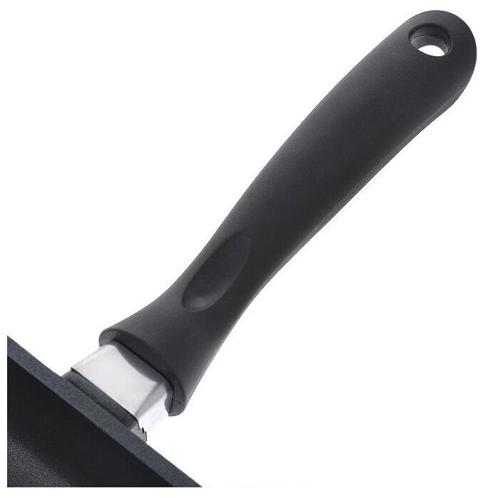 Сама сковорода и ее дно выполнены из утолщенного литого алюминия. Толщина стенок 2,5 мм, а толщина дна целых 5,5 мм. Сковорода идеально подходит для всех типов плит, в том числе и индукционных.