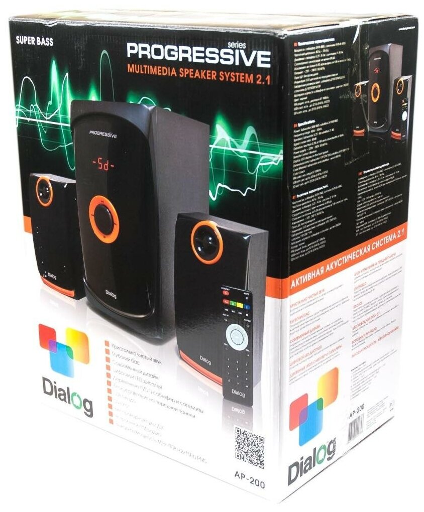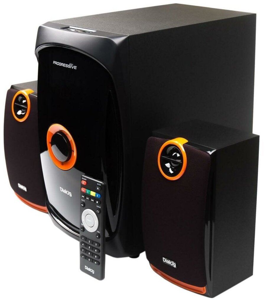 Акустическая система Dialog Progressive представляет собой комплекс, который позволяет получать высококачественное звучание, несмотря на миниатюрные размеры самой системы. Она состоит из сабвуфера и двух небольших колонок, изготовленных из МДФ, толщиной 5 миллиметров.