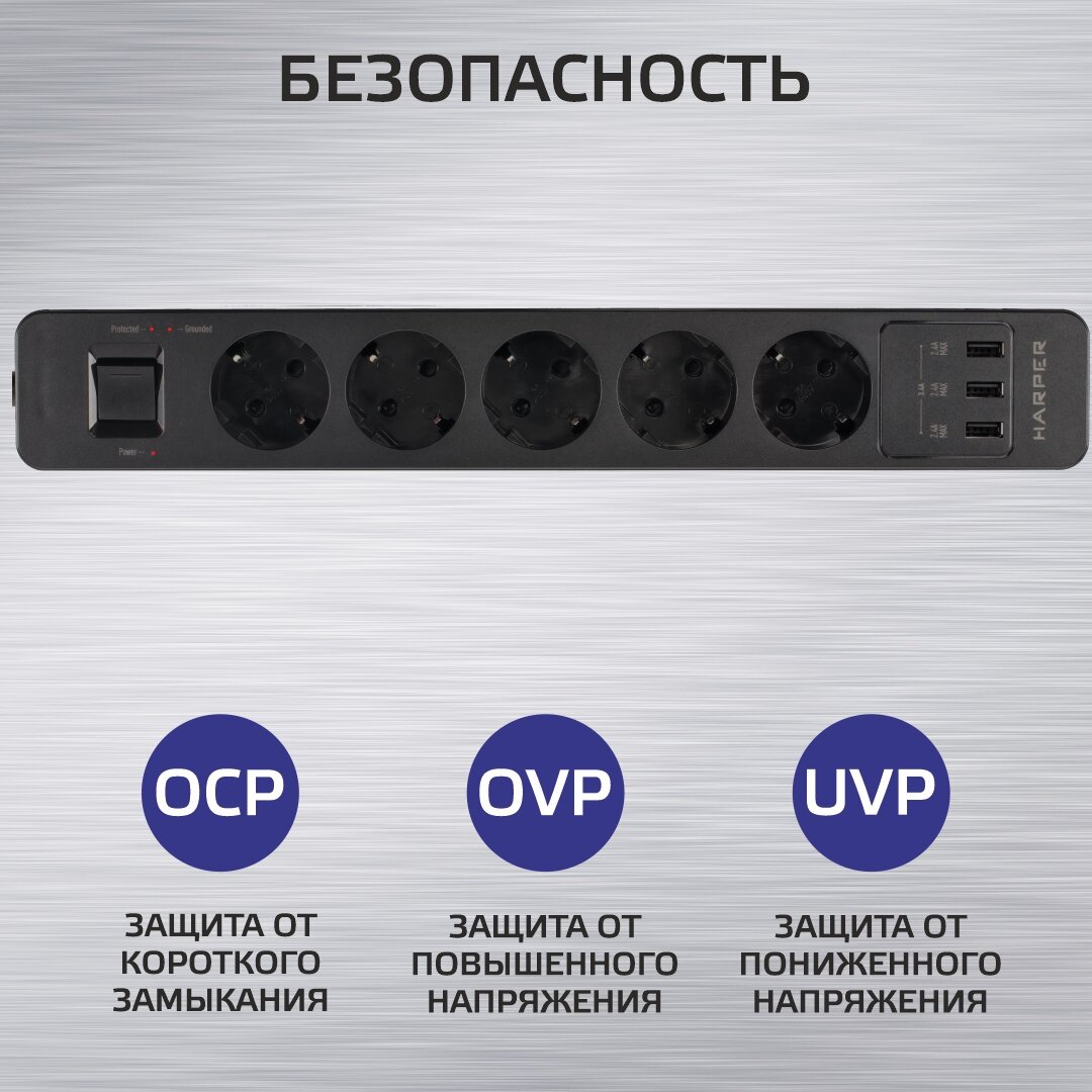 Сервис сравнения цен СкидкаГИД предлагает сравнить цены на товар «Сетевой фильтр HARPER UCH-560 (черный)»