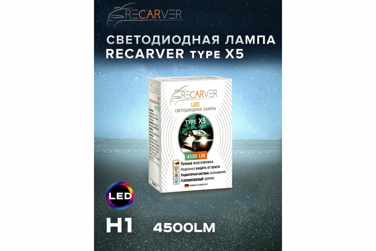 Комплект ламп LED Recarver Type X5 H1 4500 lm (2шт) 6000K LED Type X5 H1 4500 lm