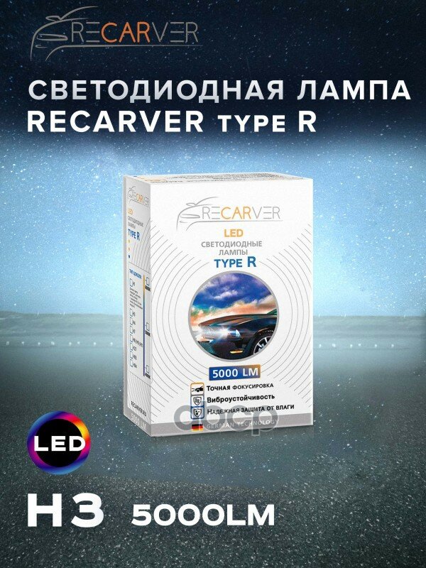 Recarver Лампа Светодиодная 12V H3 Pk22S 5000Lm (2Шт.) Type R Recarver Type R H3 5000 lm 14W (2 шт)