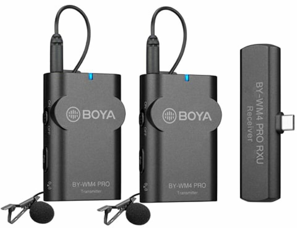 Boya BY-WM4 Pro-K6 - профессиональная модификация популярной 2.4G радиосистемы предназначена для работы с Android смарфтонами и планшетами имеющими порт Type-C. Новая модель получила улучшенные характеристики, а также расширенный комплект. Комплект K6 имеет два передатчика, что позволяет вести запись с двух источников одновременно.