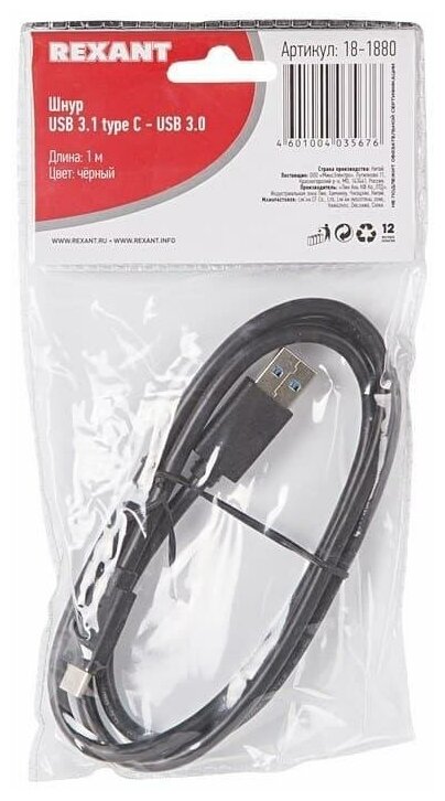 Кабель REXANT USB 3.1 type C -USB 3.0 1 м
