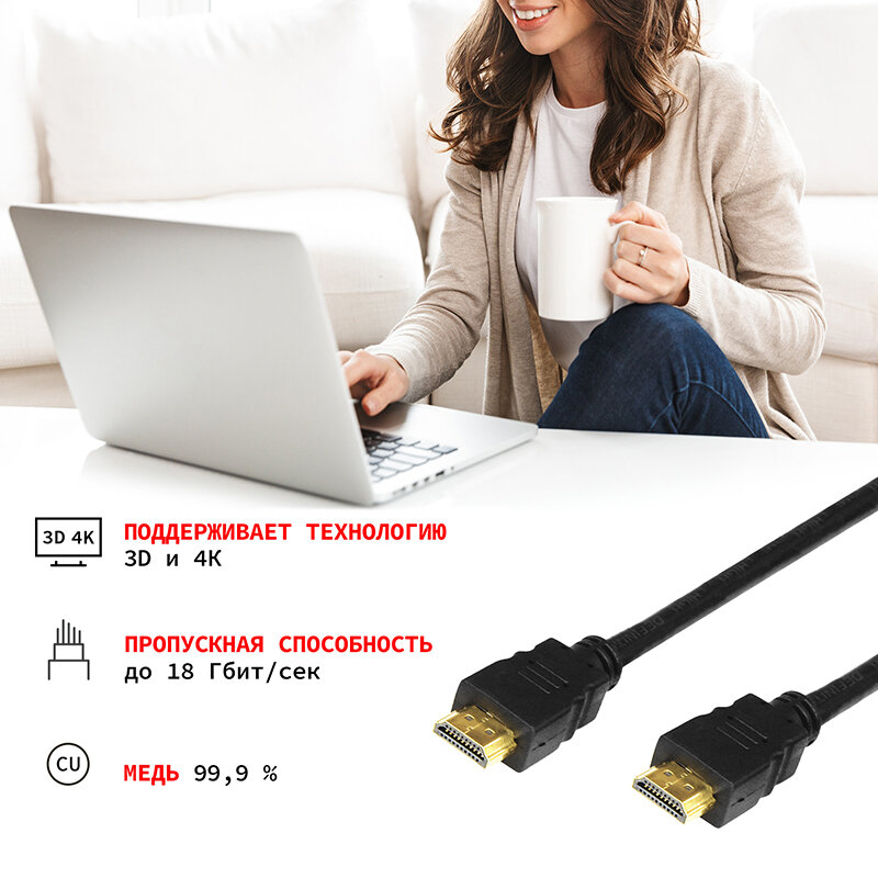 Кабель PROconnect HDMI - HDMI 2.0 предназначен для передачи цифровых видеоданных высокого разрешения и многоканальных цифровых аудиосигналов с защитой от копирования. Используется для подключения во многих устройствах нового поколения: телевизоров, компьютерах и ноутбуках, мультимедийных проигрывателях, регистраторах, игровых консолях, видеокамерах, автомобильных регистраторах и других видеоустройствах, имеющих соответствующий разъем. На контакты разъемов (19 Pin) нанесен слой технического золота по технологии вакуумного напыления, обеспечивающий повышение качественных показателей изображения и звука.