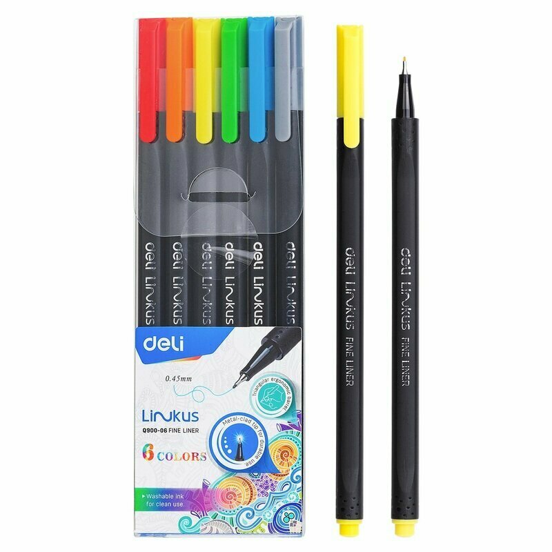 Набор ручек капиллярных (6 цветов) LINKUS (EQ900-06) DELI