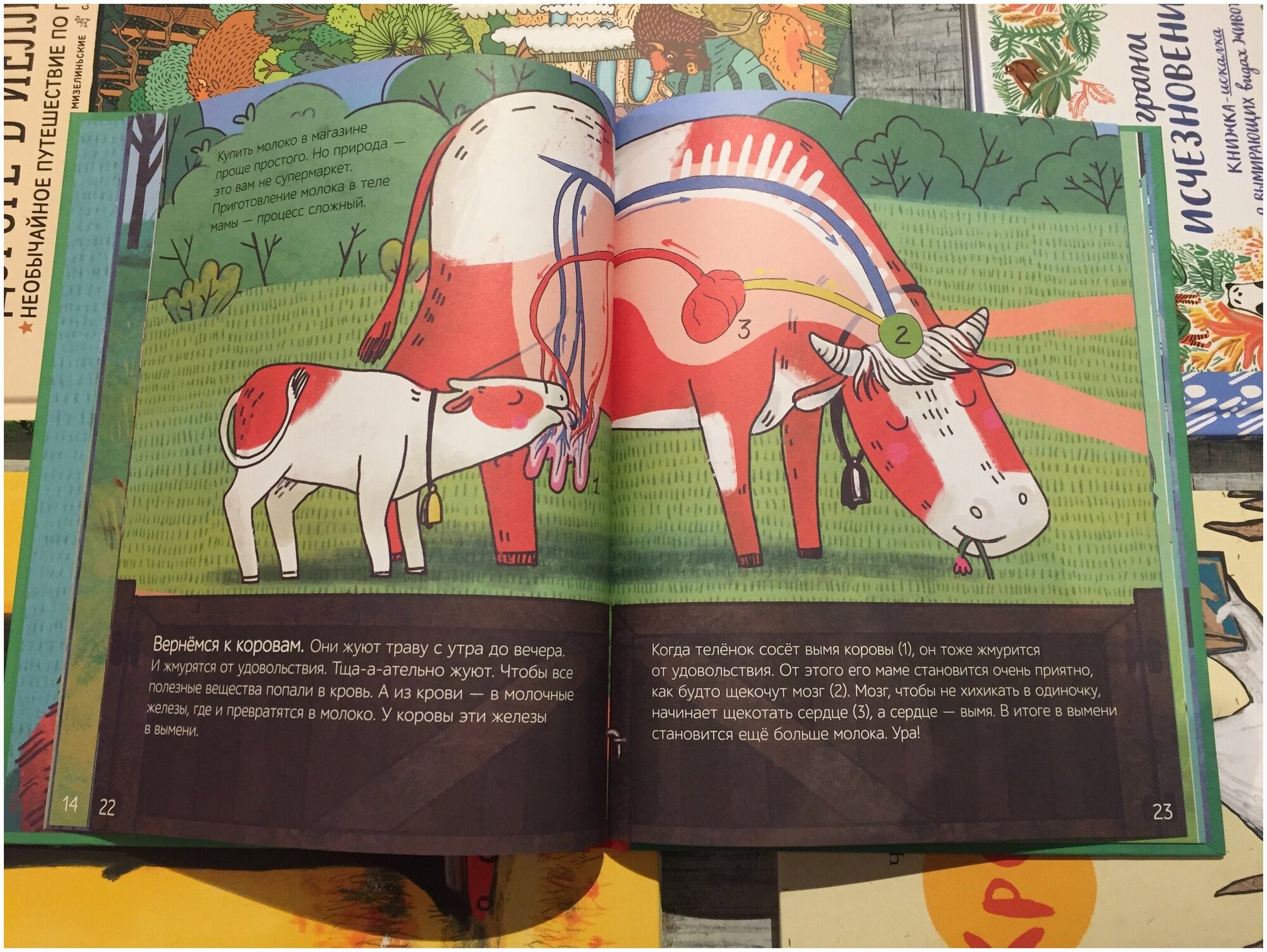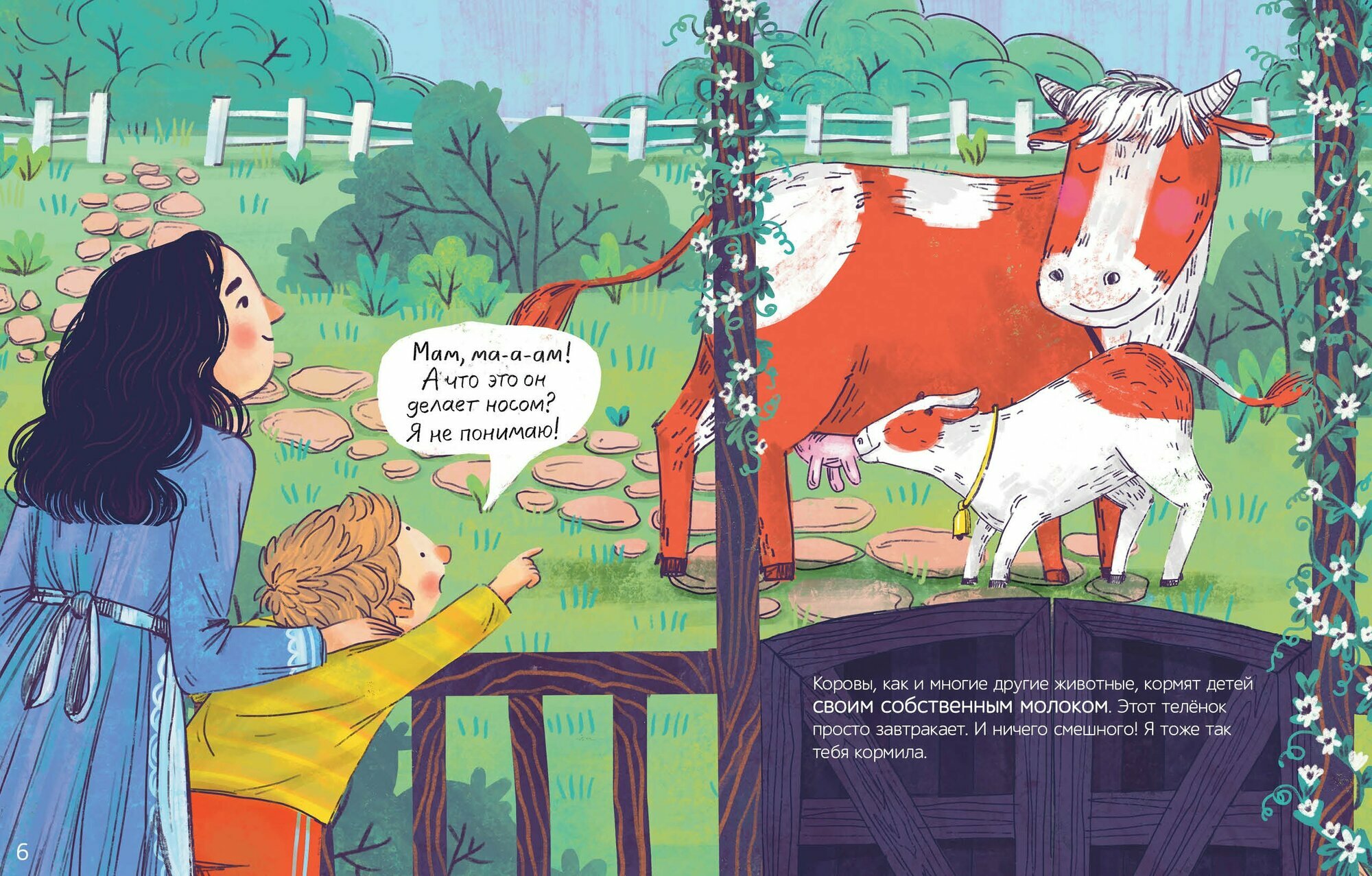 Подборка материала удивительная – где еще встретишь виды сосков, молочные железы животных и рассказ о том, у кого самое жирное молоко на свете. Все показано и рассказано на пальцах – доступные ребенку картинки и текст. Замечательная книжка для тех, кто интересуется биологией и устройством тела человека.