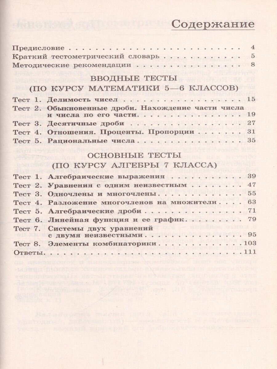 Линия УМК "Колягин Ю.М. (7-9 классы)" Данные тесты предназначены для учителей, работающих по учебнику "Алгебра. 7 класс" авторов Ю.М. Колягина и другие, а также по учебнику Ш.А. Алимова и др. Пособие содержит вводные (по курсу математики 5 - 6 классов) и основные тесты по всем главам учебника. Вводные тесты составлены в двух, а основные - в четырех вариантах. Предложенные в пособии задания учитель может использовать перед контрольными работами для определения уровня сформированности знаний и умений учащихся по теме.