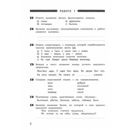 Тетрадь содержит 10 работ по 14 заданий в каждой, а также ответы. Работы позволяют педагогам и родителям выявить уровень начитанности детей и усилить мотивационную сферу обучения.