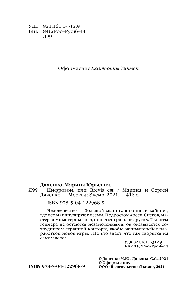 Книга: Цифровой или Brevis est (Дяченко Марина Юрьевна, Дяченко Сергей Сергеевич); ООО "Издательство "Эксмо", 2021