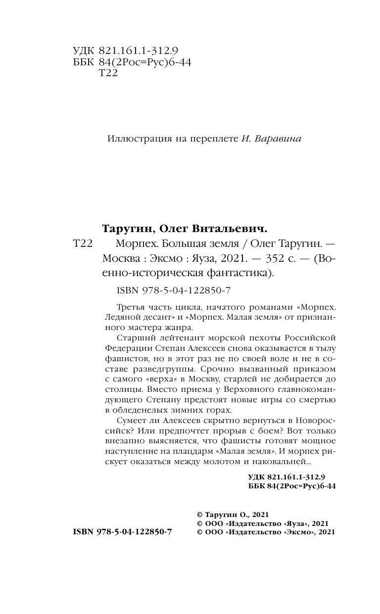 Книга: Морпех. Большая земля (Олег Таругин); Эксмо, Редакция 1, 2021
