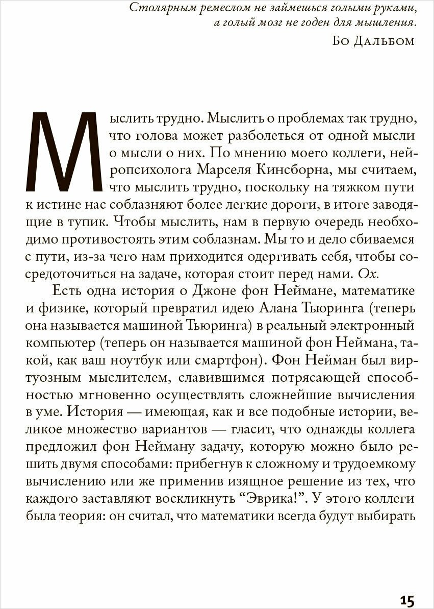В целом, данная книга будет интересна всем, кто заинтересован в улучшении своих навыков мышления. Независимо от того, являетесь ли вы студентом, профессионалом или просто человеком, который хочет мыслить глубже о мире вокруг себя, она представляет из себя источник идей, который поможет вам развить свое критическое мышление и делать более осознанный выбор. -
