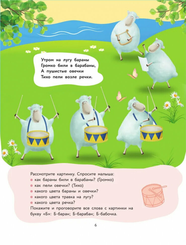 Прекрасная книжка для развития речи. Подходит даже для деток, которые пока только кивают. К каждому стишку задание либо на проработку сложных звуков, либо с гимнастикой. Много пальчиковой гимнастики, слоговые упражнения и логопедические упражнения для язычка. Хорошие стишки, очень люблю поэтессу Наталию Волкову! Ну и, конечно, очаровательные картинки. Отличная познавательно-развивающая книжка для крошек. Занимаемся в 3 годика и уже почти всё выговариваем)