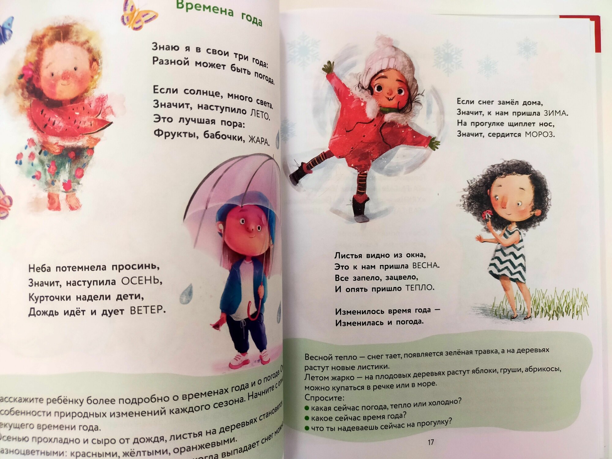 Замечательные иллюстрации, акварельные, милые, удобно что на каждой странице есть задания, это удобно если у вас плохо с фантазией, как у меня) покупала для дочери 2 лет, не скажу что прям каждый день читаем, что прям в восторге, но иногда все же просит читать) а вот отвечать на вопросы и как то заниматься по книжке не хочет)