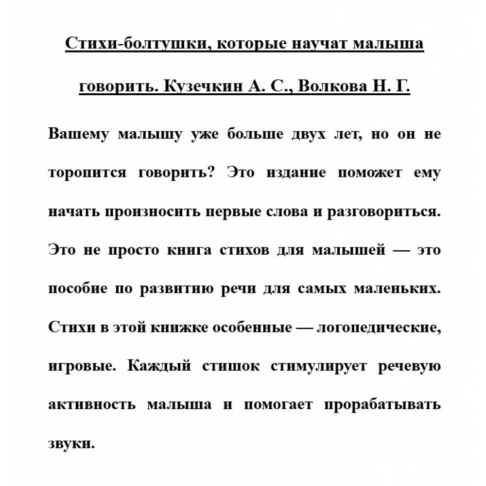 Сервис сравнения цен СкидкаГИД предлагает сравнить цены на товар «Книга: Стихи-болтушки которые научат малыша говорить (Кузечкин Андрей Сергеевич, Волкова Наталия Геннадьевна); ИЗДАТЕЛЬСТВО "АСТ", 2021»