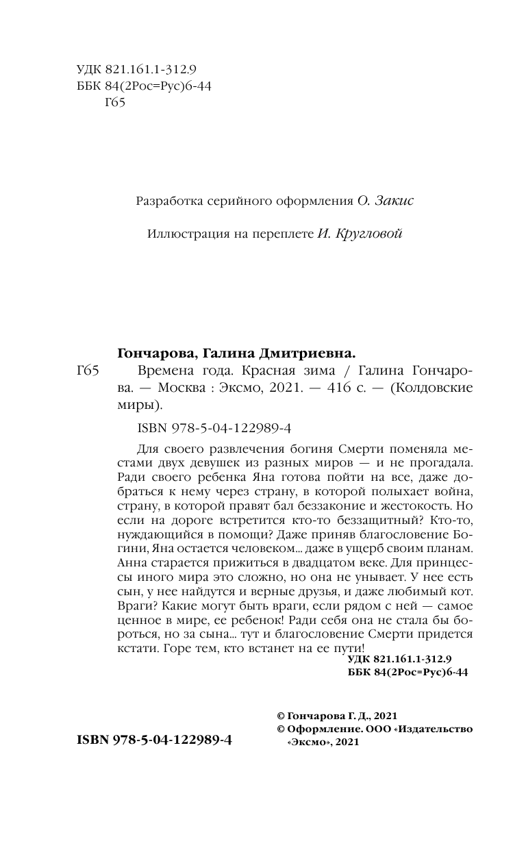 Времена года. Красная зима (Гончарова Галина Дмитриевна); ООО "Издательство "Эксмо", 2021