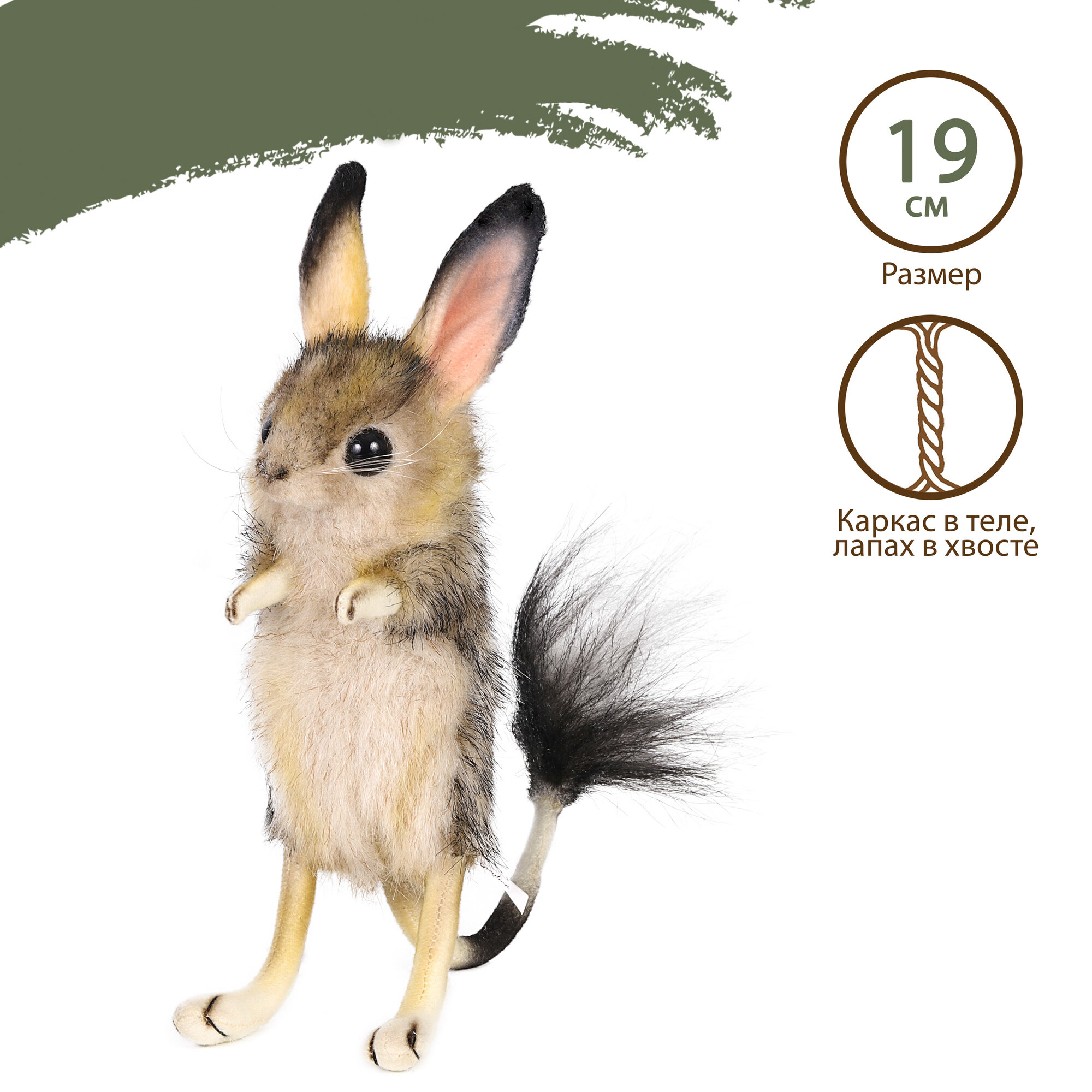 Мягкая игрушка Тушканчик 19 см - производителя Hansa creation. Забавный грызун послужит замечательным подарком на новый год, так как он близкий родственник мышей. Лапки и хвост игрушечного зверька снабжены гнущимся каркасом, так что их положение можно изменять.