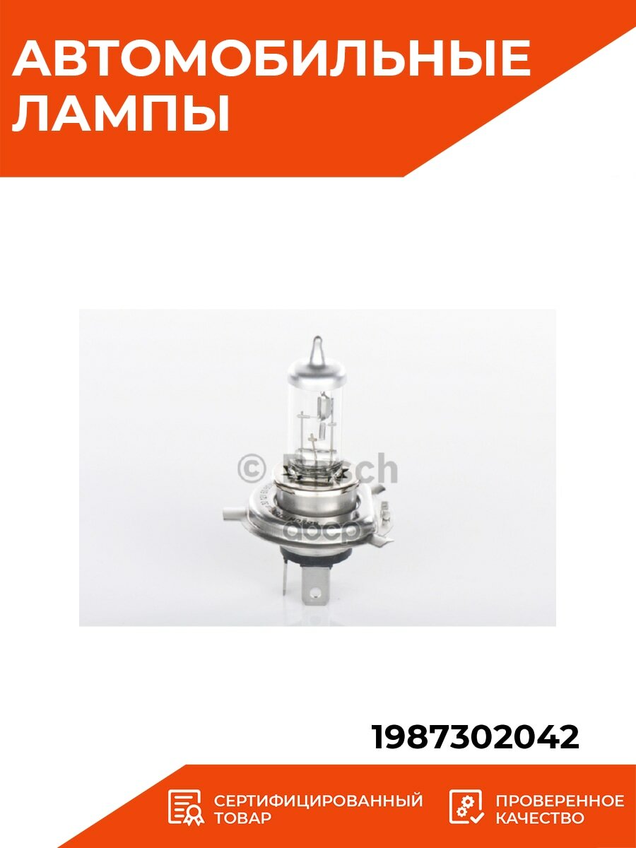 Лампа автомобильная галогенная BOSCH H4 12В 1шт 1987302042