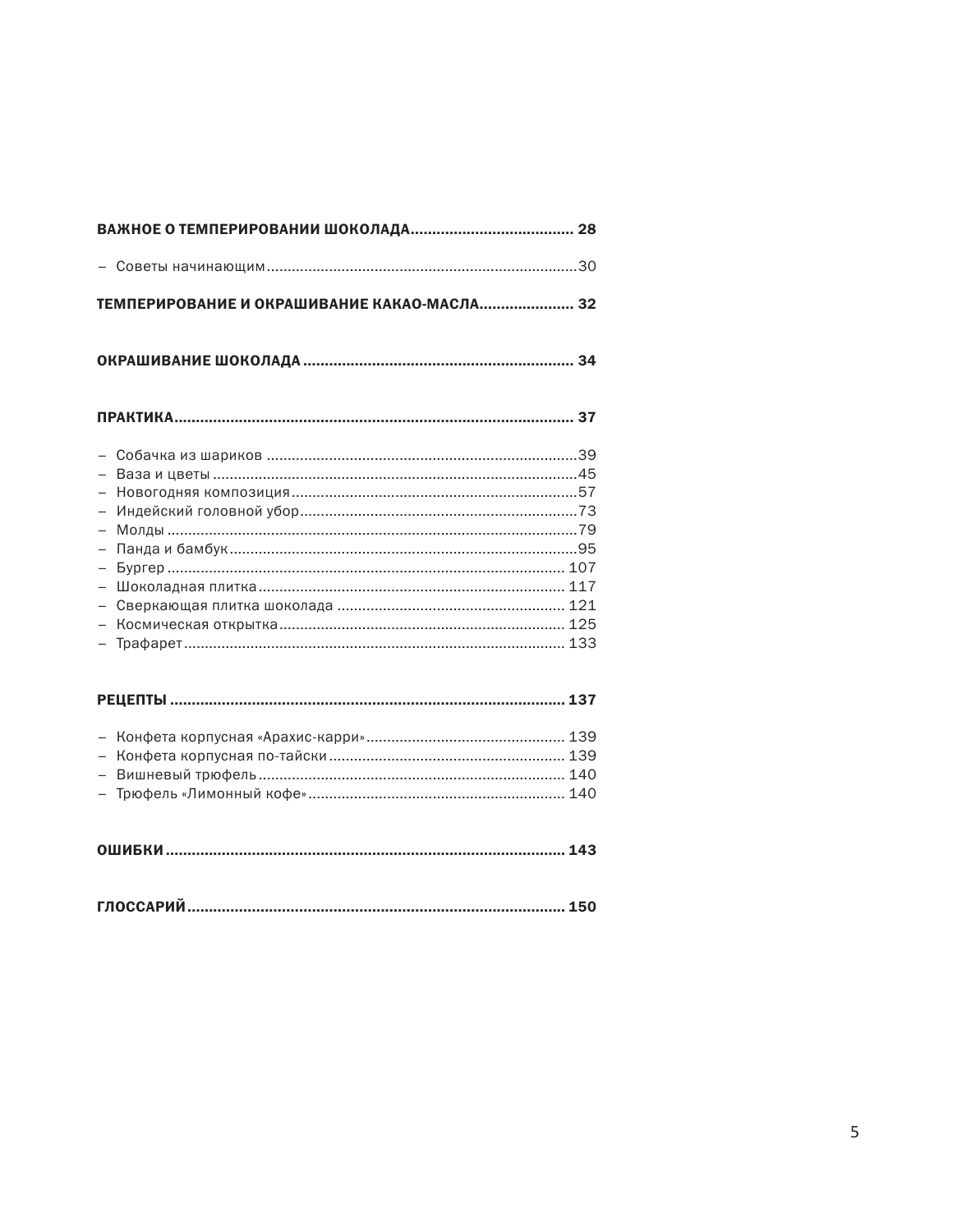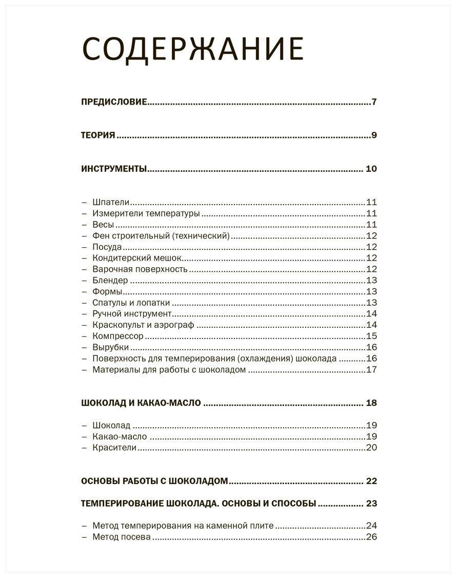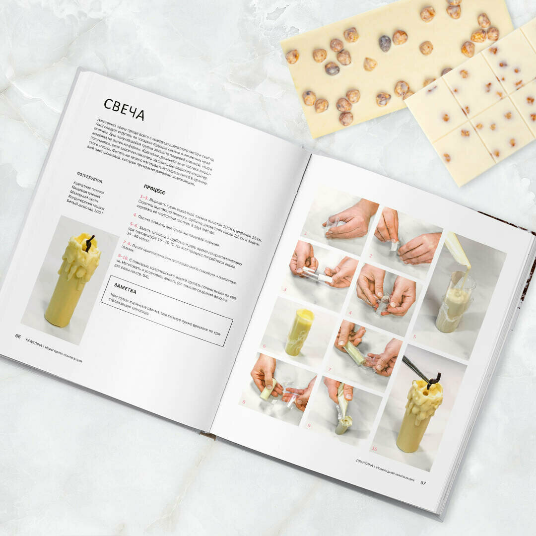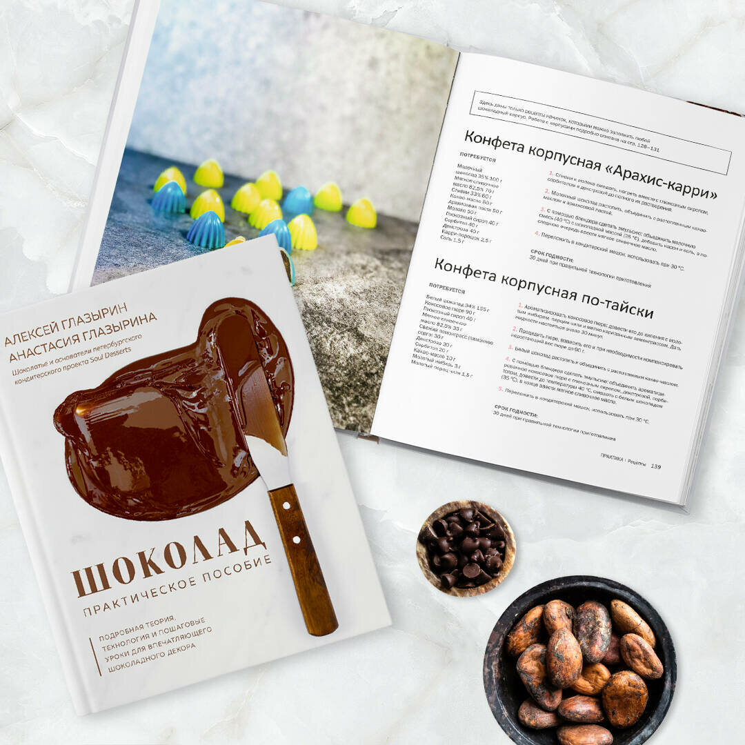 Если хотите начать работать с шоколадом — эта книга для вас. Книга представляет собой иллюстрированное пособие всех этапов создания шоколадных конфет, фигур, плиток. Перед началом практики, есть объемный блок теории, которая поможет разобраться в основных вопросах, подскажет, что нужно купить. В книге представлены удивительные варианты декора, которые легко можно приготовить самостоятельно следуя инструкциям. Книга полезна и проста, я очень довольна покупкой, в ближайшее время пойду еще и на живой мастер-класс авторов.