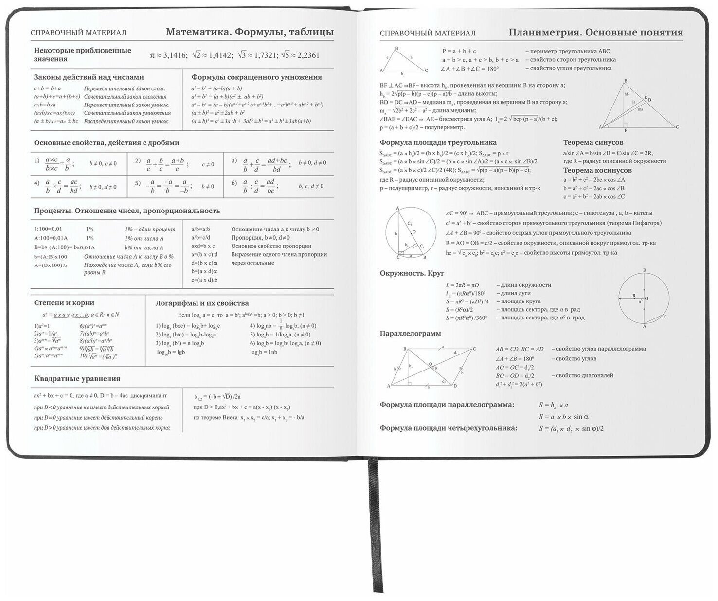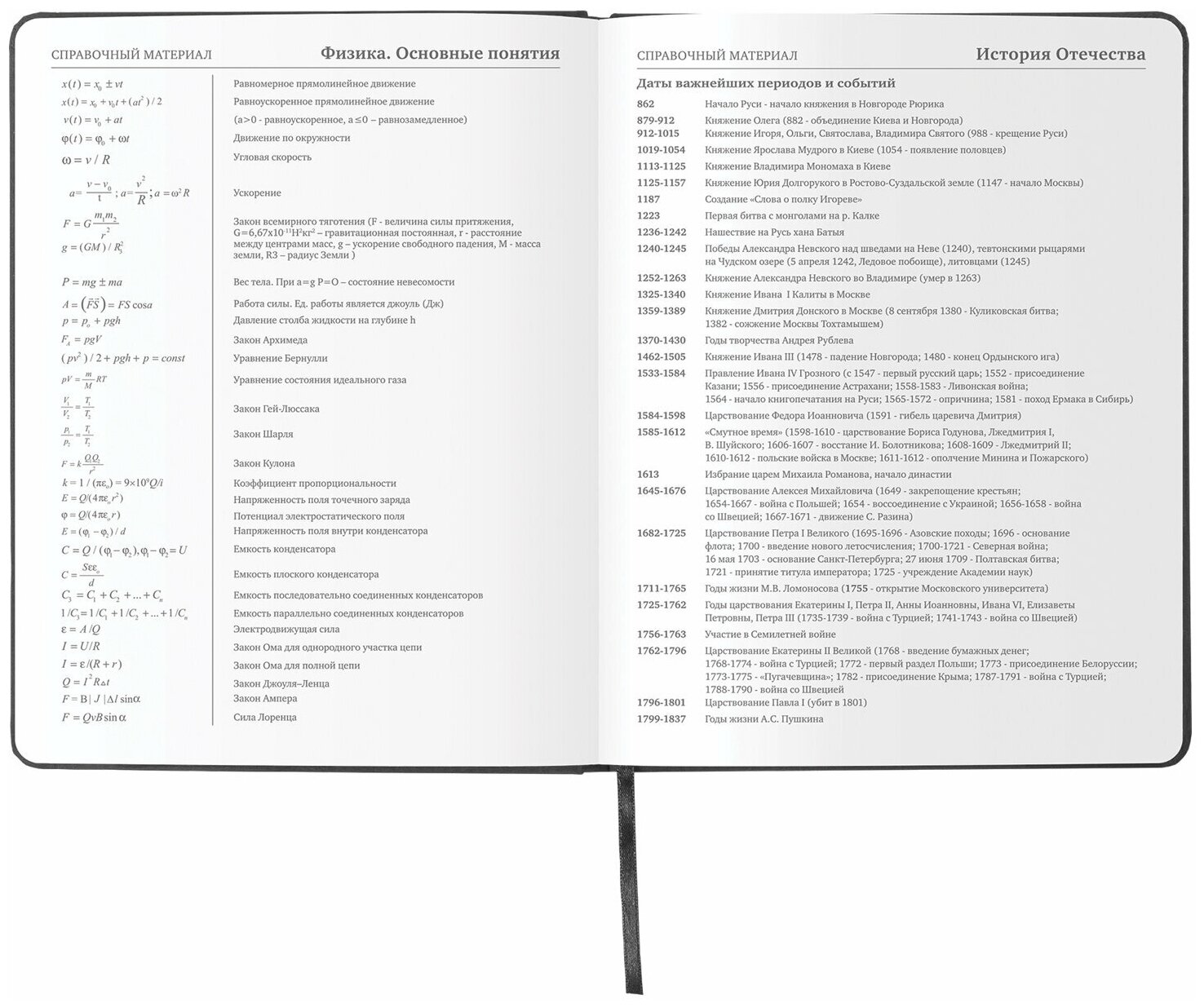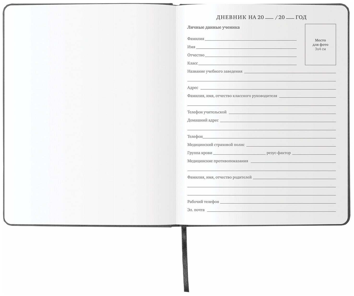 Внутри дневника 96 страниц формата A5 из офсетной бумаги плотностью 70 г/м2. Страницы скреплены методом склейки, что обеспечивает удобство использования. Закладка поможет быстро найти нужную страницу.