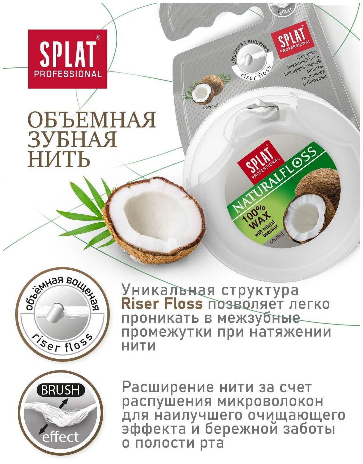 | Полное наименование | Объемная зубная нить Splat DentalFloss Natural Wax, с ароматом кокоса, 40 метров |