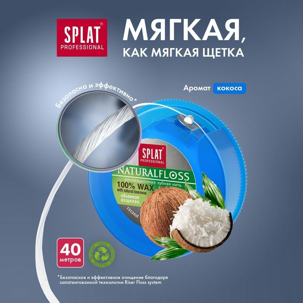 Splat Объемная зубная нить Natural Wax с ароматом кокоса 40 м (Splat ) (ЭХ99989416881)