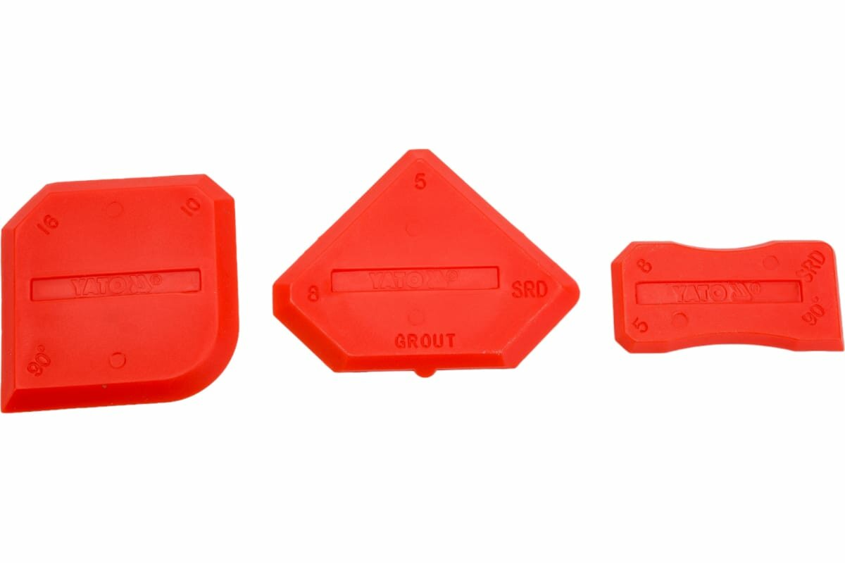 Шпатели разработаны для утонченной отделки плитки. Профилированные края для идеального распределения раствора между плитками. Изготовлен из мягкого эластичного материала на основе силикона. Они не повреждают края и не царапают поверхности. В упаковке четыре шпателя различной толщины и формы.