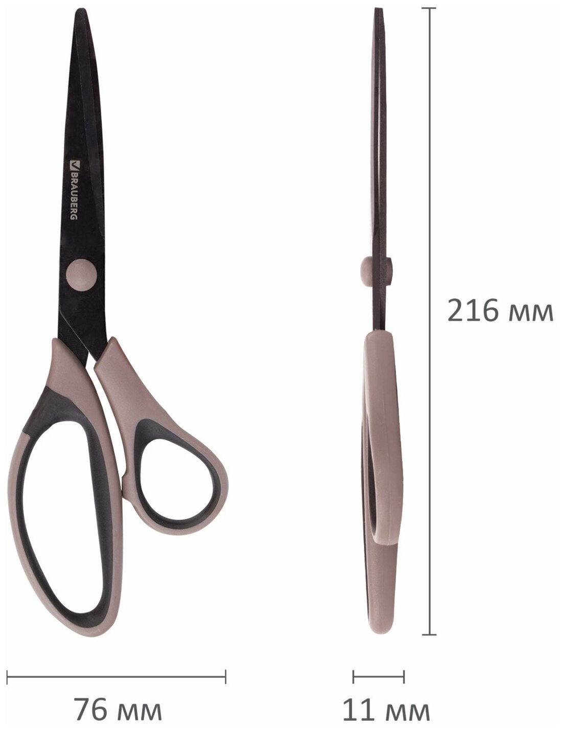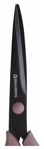 - Примечательная особенность ножниц Brauberg «Special» — стильный дизайн. Сочетание черного и серо-сиреневого оттенков делают модель эффектной и эстетически привлекательной.