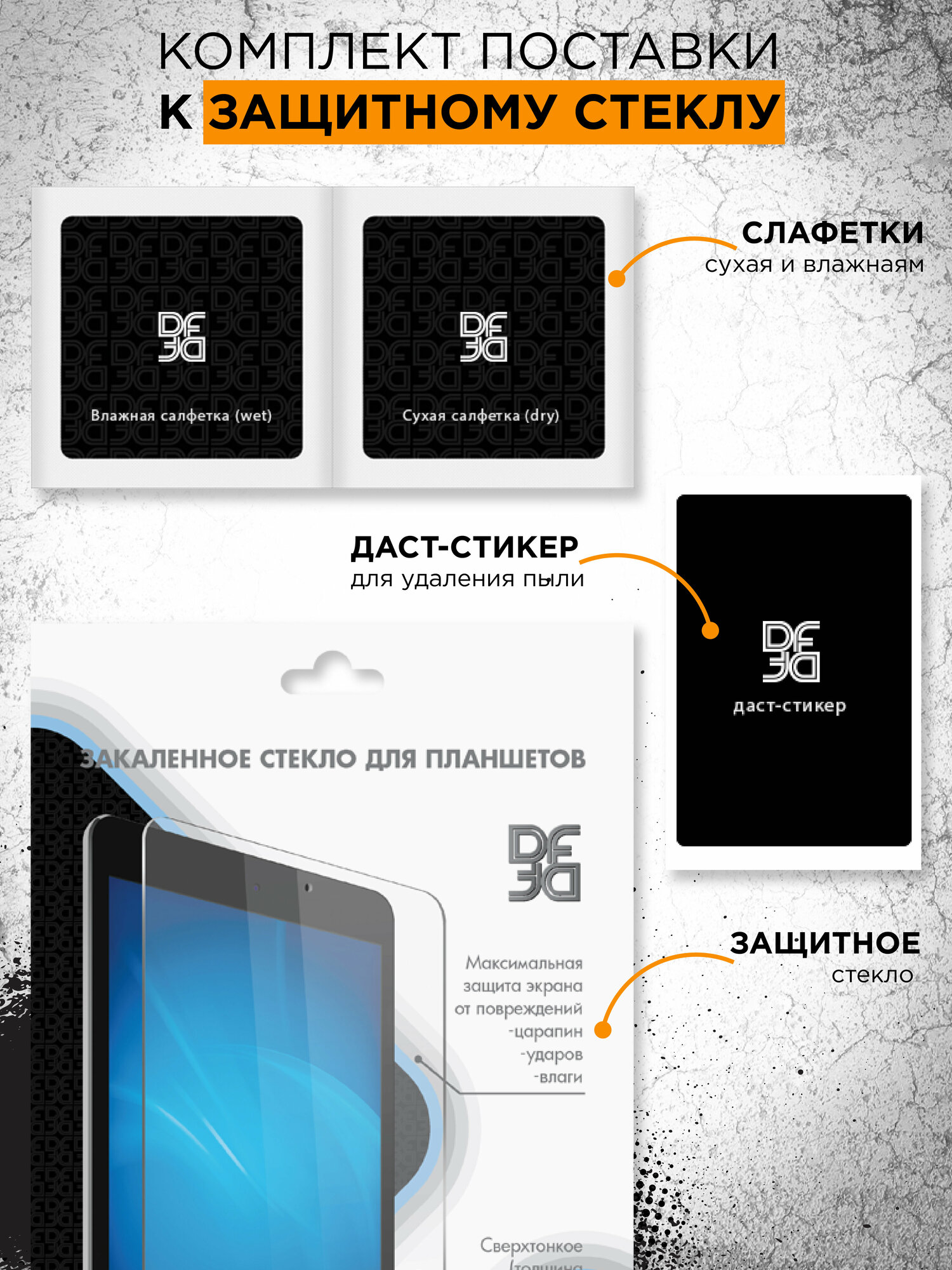 | Комплект поставки | Стекло закаленное – 1шт. Даст-стикер – 1шт. Салфетка – 2шт. Инструкция |