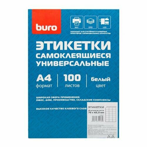 Этикетки самоклеящиеся универсальные (100 листов 70x423 мм по 21 шт. на листе) (1529697) Buro