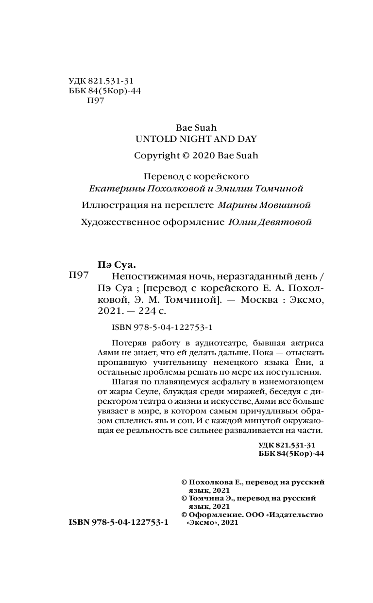 Непостижимая ночь неразгаданный день (Пэ Суа); Эксмо, Inspiria, Редакция 1, 2021