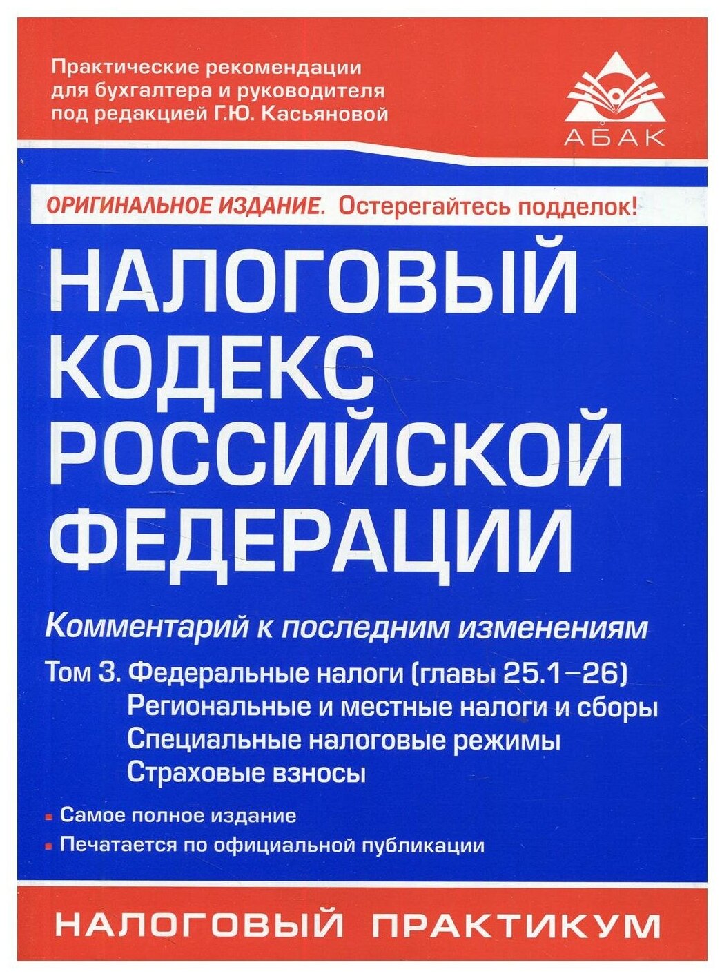 Налоговый кодекс Российской Федерации Комментарий к последним изменениям главы 25 1-26 Том 3 Региональные и местные налоги и сборы специальные налоговые режимы страховые взносы (Галина Юрьевна Касьянова); АБАК, 2022