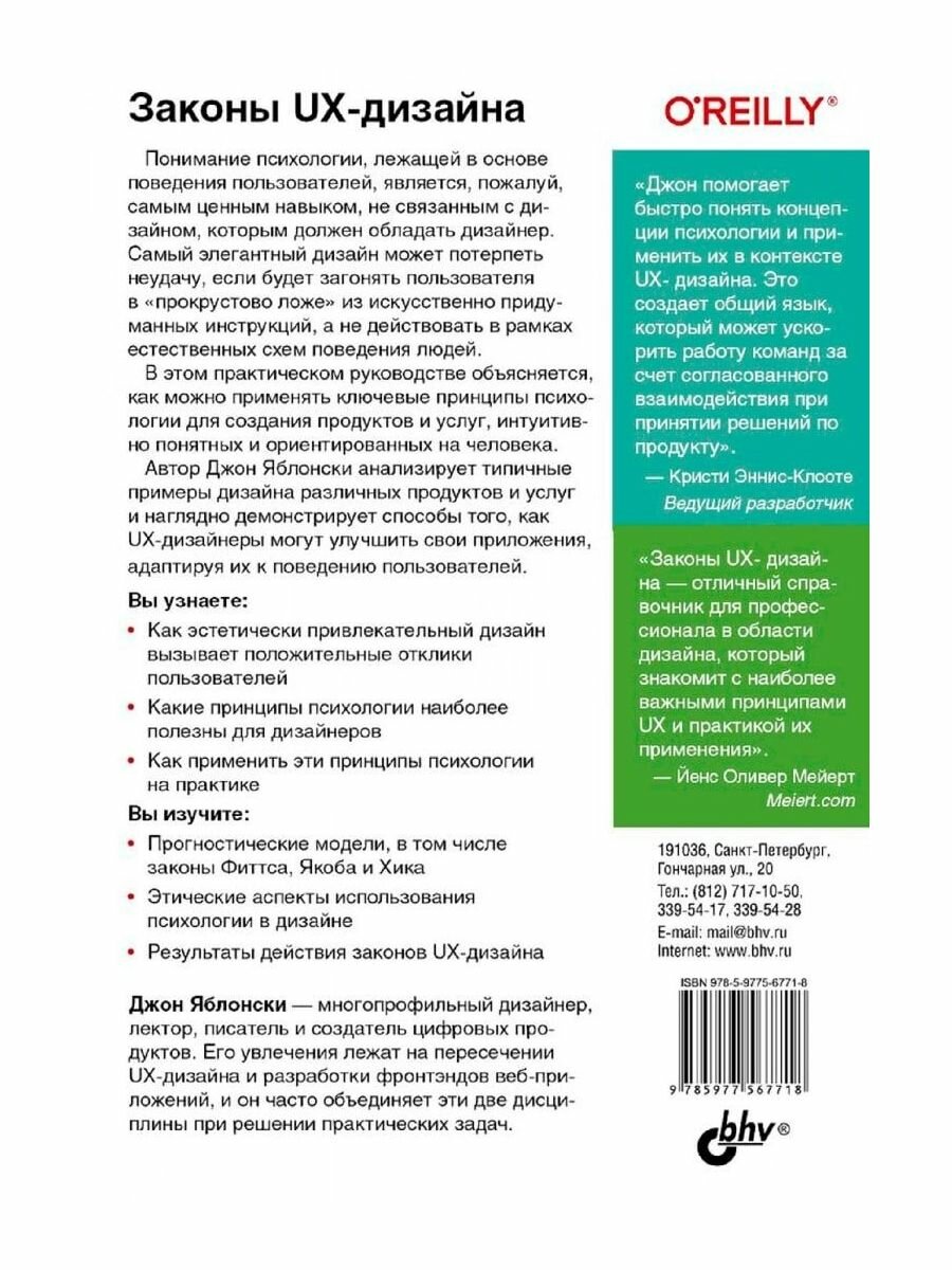 Законы UX-дизайна Понимание психологии пользователя - ключ к успеху (Джон Яблонски); БХВ-Петербург, 2021