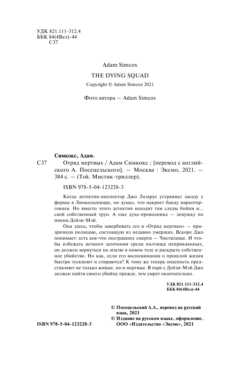 Книга: Отряд мертвых (Адам Симкокс); Эксмо, Inspiria, Редакция 1, 2021