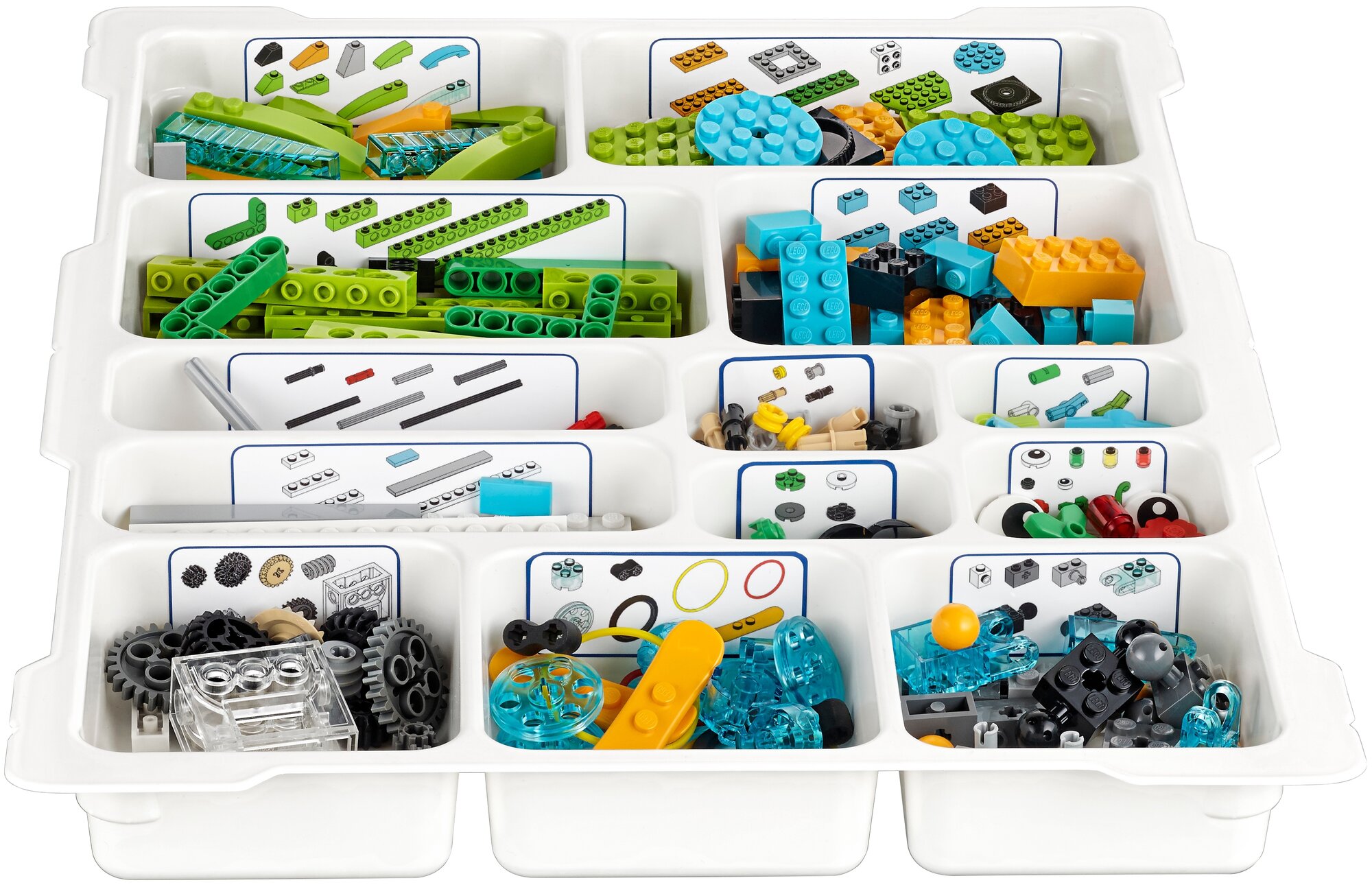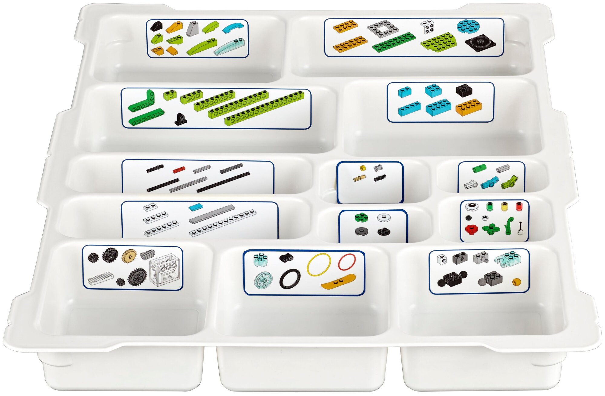 Базовый набор WeDo 2.0, ПО и Комплект учебных проектов представляют собой готовое образовательное решение, поощряющее любопытство учеников и развивающее их навыки научной деятельности, инженерного проектирования и программирования. Базовый набор поставляется в удобной для использования в классе пластиковой коробке. В комплект поставки входят: СмартХаб WeDo 2.0, электромотор, датчики движения и наклона, детали LEGO, лотки и наклейки для сортировки деталей.