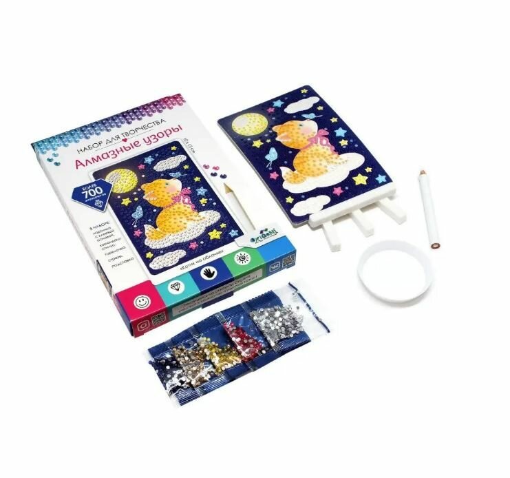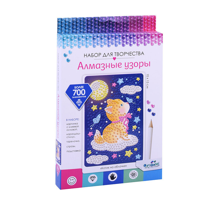 | Комплектация | картинка с клеевой основой; карандаш-стилус; стразы (более 700 элементов); подставка |