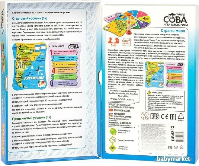 На сегодняшний день товар «Игра-викторина Умная Сова «СТРАНЫ МИРА» (ВВ4842) Bondibon» можно купить с кешбеком в 1 магазине: Яндекс.Маркет