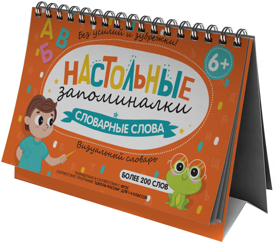 С помощью этого пособия каждый школьник запомнит словарные слова и зубрёжки. Разве это возможно? Легко! Поставьте книжку на рабочий стол и переворачивайте страницы каждую неделю. Даже случайно бросая взгляд, школьник будет незаметно для себя "фотографировать" в памяти нужные слова. Рисунки-ассоциации помогут запомнить непроверяемуюорфограмму ещё быстре. Слова соответствуют школьным программам по русскому языку для начальной школы.