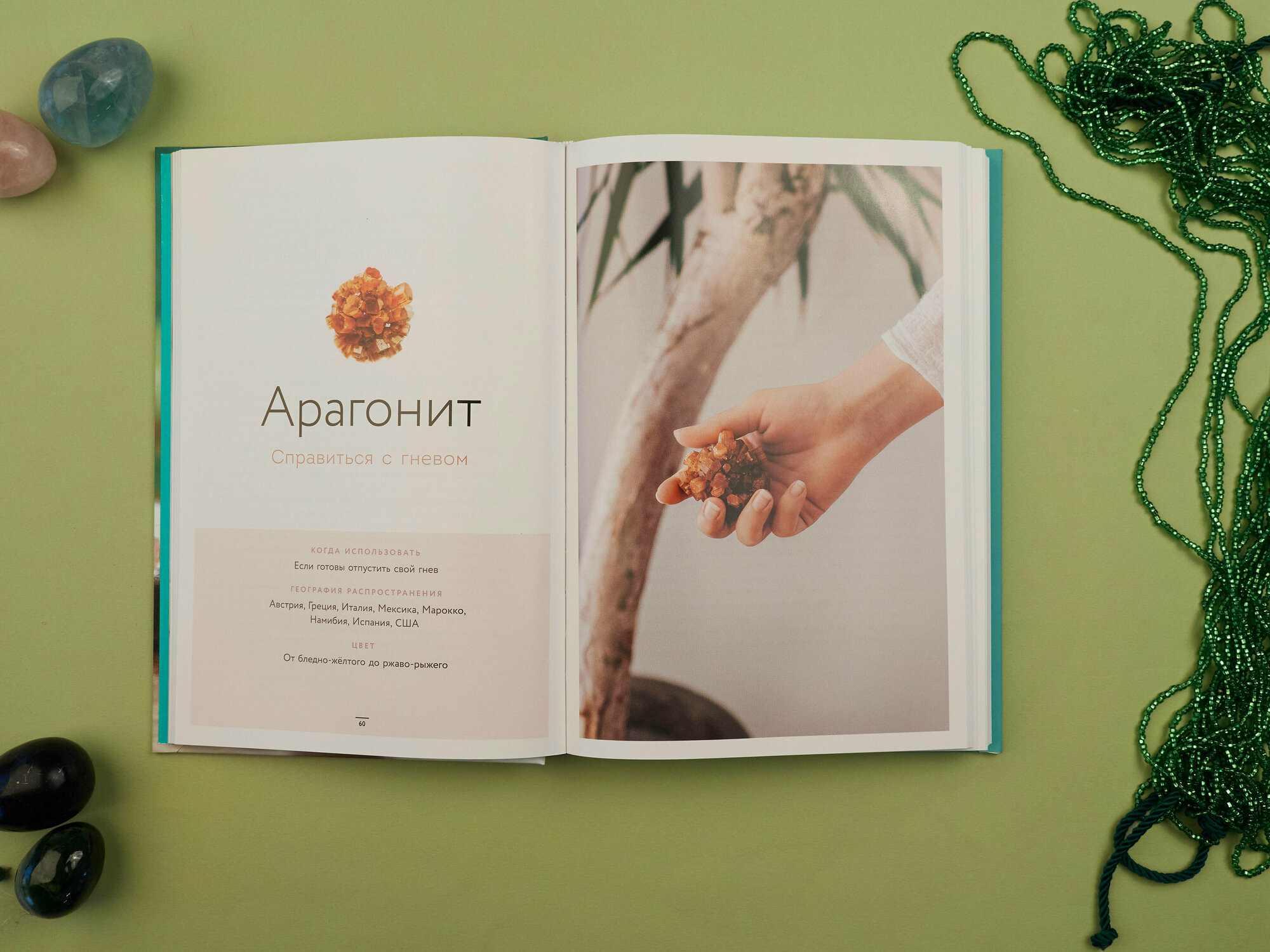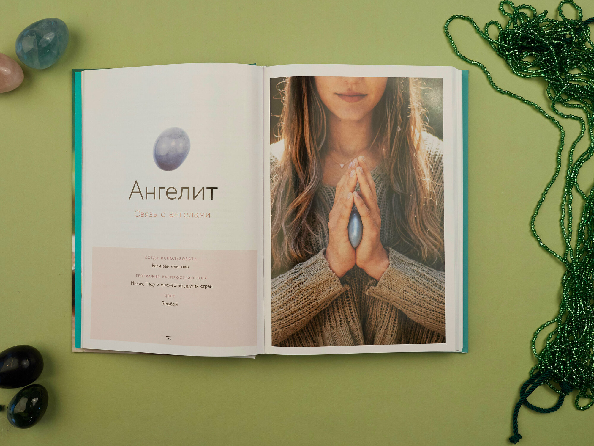 Очень красивая, яркая книжка с приятными глянцевыми страницами. Все иллюстрации атмосферные, сразу проникаешься энергией камешка. Мне понравилось, что у каждого камня есть краткая подпись когда использовать – например, красную яшму – «Когда прокрастинируете». Это очень удобно! Ещё про каждый камень есть история про его название, про происхождение, про то, как его использовали в разные времена – очень познавательно! И, конечно же, много ритуалов – как для каждого камня, так и для их сочетаний.