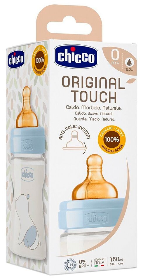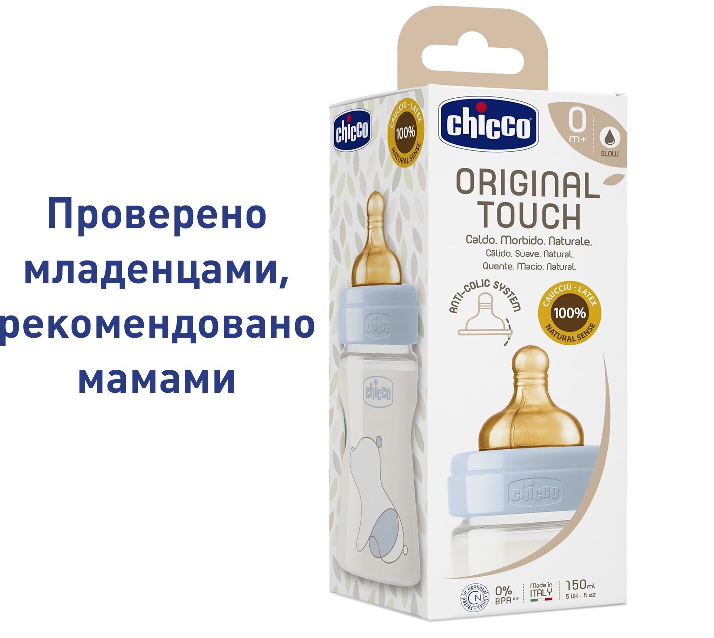 Бутылочка Chicco Boy с соской из латекса 150мл Original Touch пластик