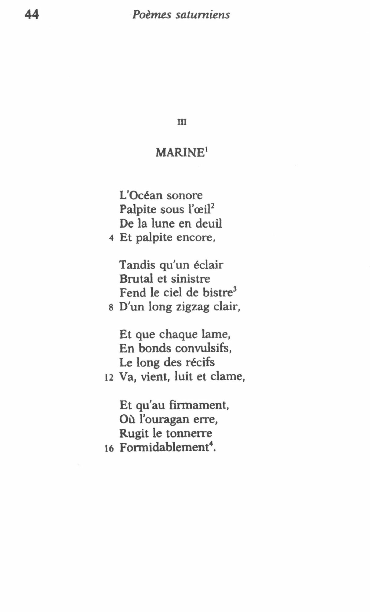 Des Poemes saturniens, entendons qu’ils sont places sous le signe de Saturne. Ils seront donc inspires : il n’etait pas inutile de l’affirmer alors que regnaient encore des versificateurs parnassiens. Ils seront aussi baignes d’une reverie douce et savante, tandis que le poete tournera son regard vers l’interieur. Point ou peu de recits ou d’anecdotes. Ici l’on se souvient, l’espace d’un sonnet, sur un air de chanson grise. Tout semble simple. Tout est savant, mais d’une technique si maitrisee qu’elle a cesse d’etre visible, au point que beaucoup s’y sont trompes. Verlaine est un poete a la fois immediat et difficile. Il exige donc une annotation riche et precise, une attention a la langue et a la prosodie, alors, mais alors seulement, comme l’avait dit a peu pres Ovide : « Maintenant, va, mon Livre, ou le hasard te mene ! »