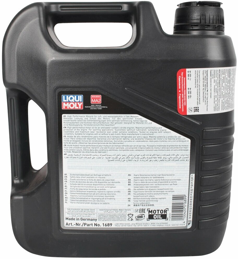 Высокоэффективное моторное масло для использования в 4-х тактных двигателях мотоциклов и мотоциклетных коробок передач. Специально для всесезонного применения в двигателях мотоциклов любого назначения, квадроциклов и скутеров. Подобранные базовые компоненты и присадки обеспечивают оптимальное смазывание на любых режимах, хорошую прокачку и чистоту двигателя. Для двигателей с «мокрым» и «сухим» сцеплением.
