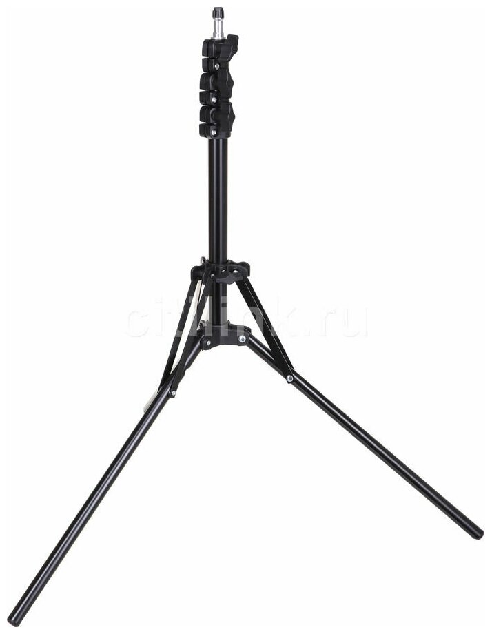 Лёгкая, очень компактная, но прочная 3-х секционная реверсивная алюминиевая студийная стойка позволяет надёжно закрепить кольцевую лампу на высоте от 44 см до 160 см, а шаровая голова крепёжного узла лампы обеспечивает широкий выбор углов наклона и поворота лампы, дающих максимальную свободу творчества пользователя.
