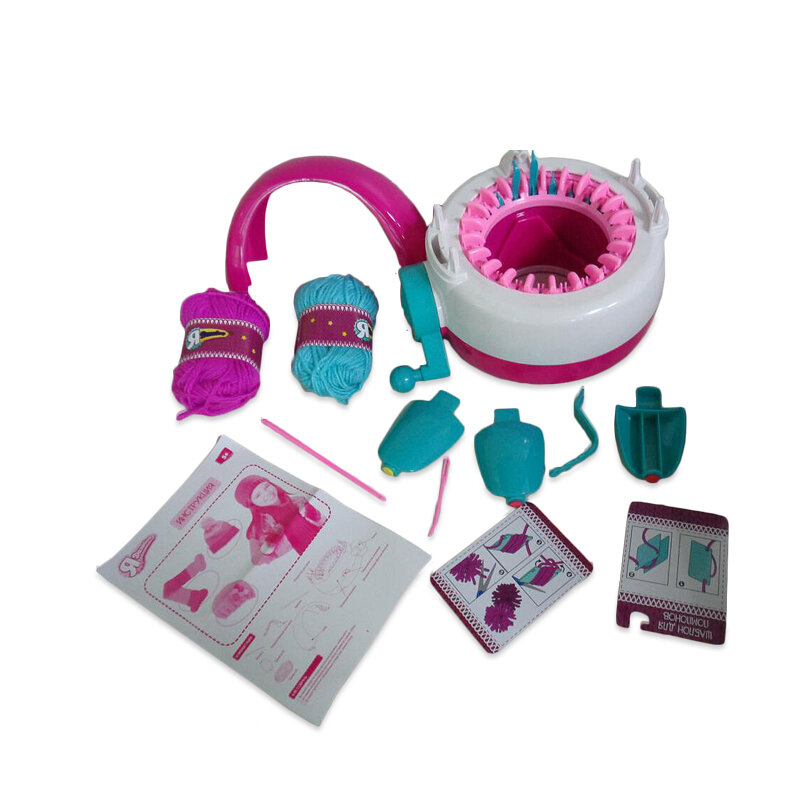 | Состав набора | крючок для вязания - 1 шт; пряжа для вязания - 2 шт; иголка - 1 шт; шаблон для помпонов - 2 шт; инструкция - 1 шт; вязальная машинка - 1 шт |