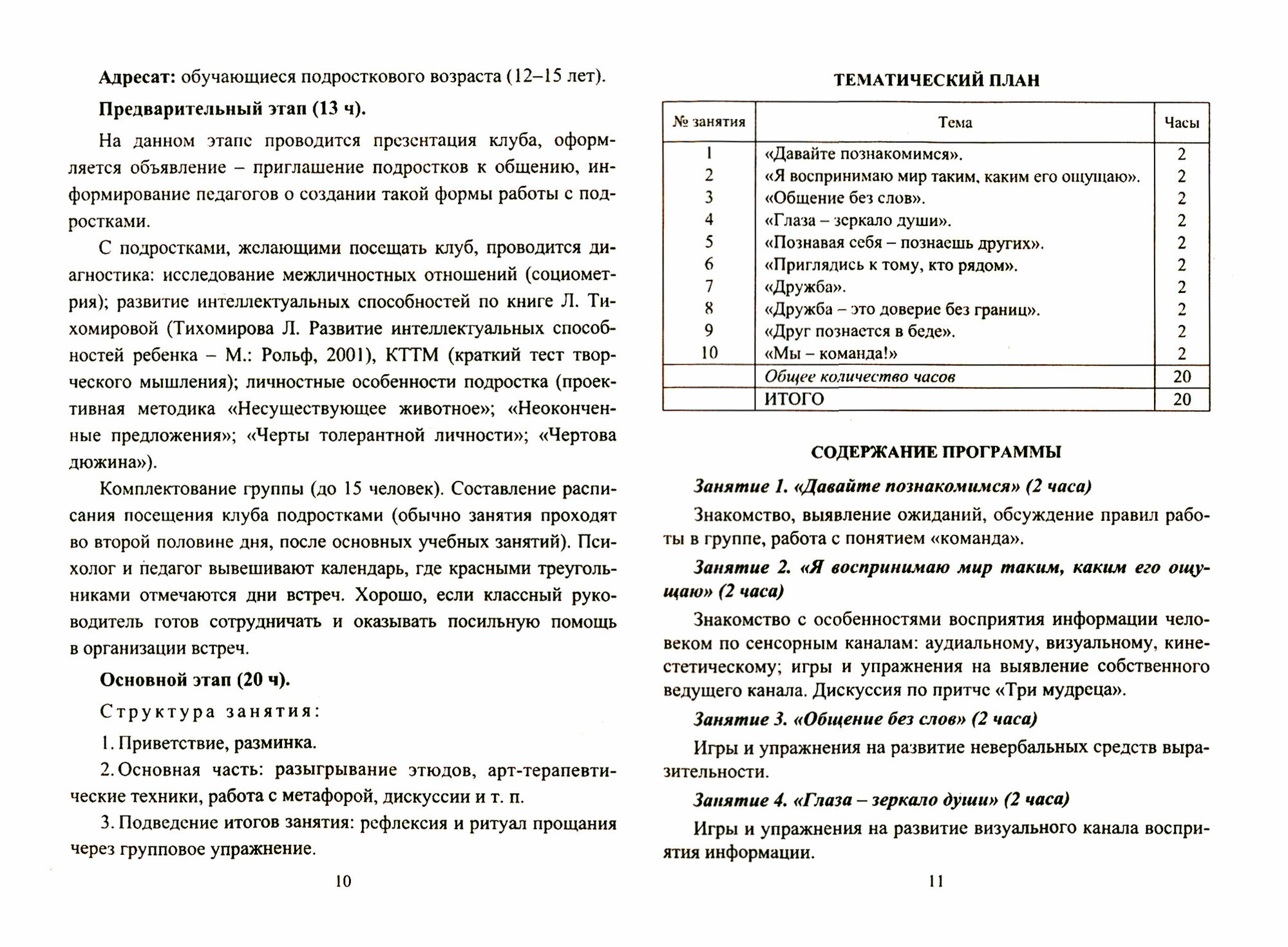 В пособии предложены программы, рекомендации и разработки занятий в клубах общения "Диалог" и "Мой мир" для подростков и старшеклассников. Содержание этих занятий направлено на формирование навыков вербального и невербального общения, понимания и выражения эмоций и чувств как собственных, так и окружающих, развитие уверенного поведения во взаимодействии с другими людьми, умения презентовать себя, что является наиболее актуальным в профессиональном становлении и личностном развитии каждого человека.