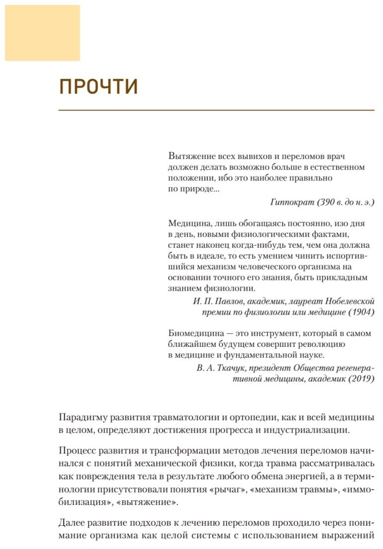 Такое развитие травматологии и ортопедии происходит последовательно и динамично. Новые методы, ни в коем случае не отменяя прежние подходы к лечению, гармонично дополняют их. По мнению авторов, уже сейчас современному травматологу-ортопеду необходимо ориентировать свое развитие на освоение базовых знаний о физиологии и регенерации соединительной ткани. Эти знания перестали быть компетенцией только ученых, они упорно и настойчиво заставляют обращать на себя внимание клиницистов.